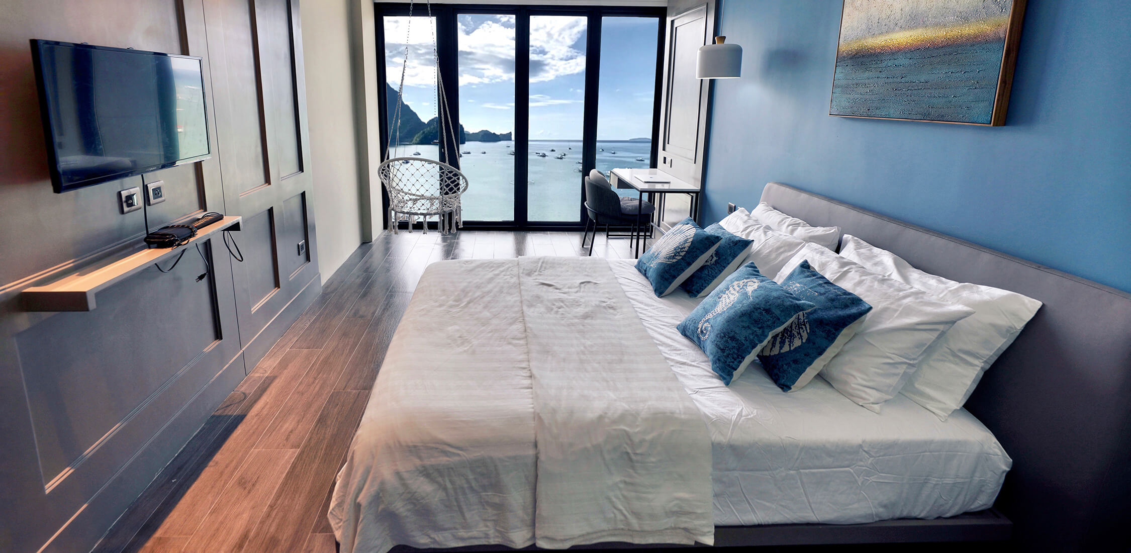 Immerse yourself in the stay of a lifetime at our hotel, where every moment is a breathtaking experience. Wake up to stunning ocean vistas from the comfort of your own private balcony and let the tropical breeze fill your senses. The spacious interiors are thoughtfully designed to provide you with ample space to work and unwind in luxury. With unobstructed panoramic ocean views, our Ocean View rooms offer the best of El Nido both inside and out, providing an unparalleled stay that will leave you with memories you will forget.